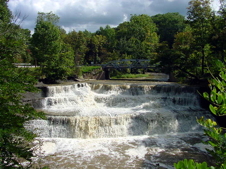 Chagrin Falls (the namesake of the small town they reside in) are unique in that they are located smack dab in the center of an urban area. The falls are perfect for an afternoon picnic, fishing or even a quick dip! In fact, they made our list of the best swimming holes near Cleveland. Walk down the stairs from the street to access all of it!